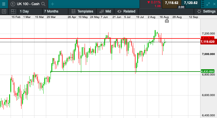 The UK 100 is called to open +10 points today at 7119.