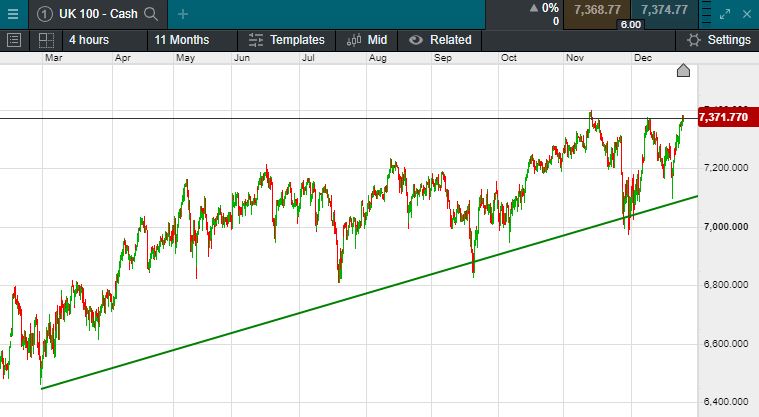 The UK 100 is called to open -10 points today at 7361.   The UK's blue chip index is expected to open marginally lower on the last trading day before Christmas, seemingly continuing not to allow Omicron to dampen sentiment.  Wall Street rose again overnight after more strong US macro data. The S&P 500 rose by 0.62%, while the Nasdaq jumped by 0.82%, with the Dow Jones moving 0.52% higher.  As to be expected in Asia this morning, markets are broadly unchanged, the Nikkei 225 is barely changed in Tokyo while in Hong Kong the Hang Seng is up 30 points at 23,224.