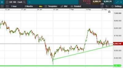 UK 100 is called to open -30 points this morning at 6594. Calls for a negative open come as global markets fell both yesterday and overnight and sterling jumps with reports Rishi Sunak could extend stamp duty holiday. Stateside yesterday saw the Dow Jones closing up 0.05% at 31,537 while the S&P was the stand out performer, rising 0.13% to 3,881. The Nasdaq was the biggest faller, giving up 0.5% to 13,465, however all three indices recovered from far more significant earlier falls by the testimony of Fed chair Jay Powell to the Senate Banking Committee yesterday as he sent no signals he was overly concerned about a recent sharp rise in long term US bond yields while also remaining relatively soft on the inflation outlook. Asian shares tumbled sharply, following US markets’ rocky session, with China down more than 2% and Japan and Australia down more than 1%. Hong Kong also fell sharply this morning, the Hang Seng falling by 2%.
