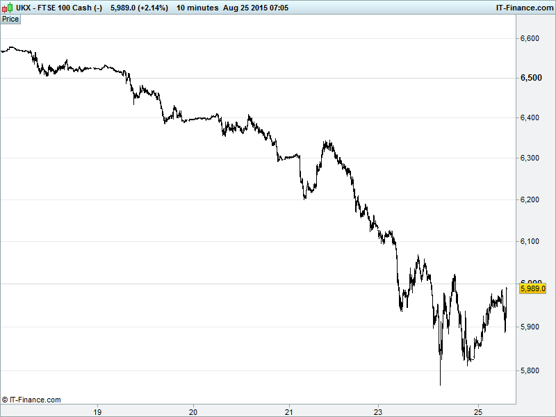 UK 100 called to open +80pts at 5995 after a terrifying global equity sell-off Monday that saw Wall St. in particular fall by over 1000pts before rallying. UK Index found support at 5860, bulls looking to regain 6000 support while bears getting ready to ride another sell-off. Watch levels: Bullish 6100, Bearish 5750