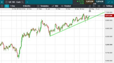 UK 100 is called to open +20 points this morning at 7071.  A positive open is predicted on the UK blue chip index this morning, following on from a strong session stateside yesterday, which saw all major indices finish in the green, led by the tech sector, which pushed the Nadsdaq Composite up another 1.4% to just over 13,661.  The S&P 500 rose 1% and the Dow Jones finished 0.5% higher.  This positive sentiment continued into Asia today, The Shanghai Composite in China surged 1.80% and Hong Kong’s Hang Seng index rose 1.38%.  In Japan, the Nikkei 225 gained 0.49%