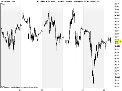 European bourses also called positive after the data of yesterday (solid IFO after better PMIs, UK GDP improvement) failed to offset mixed European Q2 results and the IMF saying the ECB needs to do more to help Eurozone (rate cuts, negative rates, LTRO4) and that growth may not return until 2014 and talks of dismissive remarks regarding QE3 by Fed chair frontrunner Larry Summers.