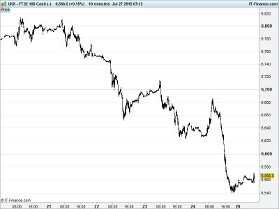 US markets closed weaker on Friday (Dow Jones’ worst week since January) as the weight of disappointing corporate results, notably technology names, took hold along with the commodity sell-off, the strong USD and weak housing data falling to its lowest in 7 months offsetting solid PMI manufacturing for the world’s #1 economy. Some reticence to place bets ahead of US Fed meeting and latest GDP read (and revisions).