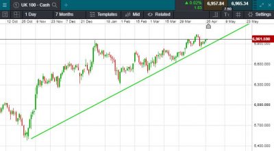 UK 100 is called to open +3 points this morning at 6967.  A modestly higher open is expected this morning, this comes after stocks in Asia overnight were mostly lower on Tuesday as investors await cues from the U.S. Federal Reserve’s two-day meeting, which begins today, and more earnings.  The Hang Seng index in Hong Kong rose 0.14% while the Shanghai Composite in China slipped 0.41%.  In Japan, the Nikkei 225 fell 0.28% and South Korea’s Kospi dipped 0.37%.  It was a broadly positive session in the US yesterday, with the S&P 500 edging higher to close at another record on Monday, while the tech-heavy Nasdaq Composite climbed 0.9% to hit its first fresh record close since Feb. 12.  The Dow Jones Industrial Average closed lower by 0.18% to be the sole underperformer.