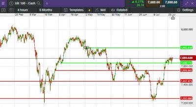 The UK 100 called to open +15 point at 7,691. The UK 100 looks set to open higher this morning following the Fed's 0.25% base rate rise last night, as expected by the majority of the city, traders will be hoping that this could be the last rate rise in this cycle. The Fed's chair Jerome Powell was coy when it came to future policy. He did not commit to another hold in September, but did not really choreograph another hike either, as he affirmed a "data-dependant" approach to future decisions. Leaving the door open for future hikes this year, Powell ruled out cuts until the next at the earliest. "We will be comfortable cutting rates when are comfortable cutting rates", he said.