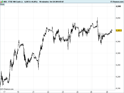 UK 100 Index called to open +25pts at 6390, floundering slightly back below the 6400 level after yesterday’s IFO survey data from Germany put paid to what had looked like a breakout on EU bank stress test results, data from across the pond failed to boost optimism and Twitter’s guidance disappointed last night.