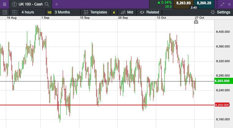 The UK 100 called to open +18 points at 8,266.  The UK 100 looks set to open slightly higher this morning and kick off the week on the front foot.