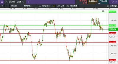 The UK 100 called to open +2 points at 7,594. The UK 100 looks set to open higher this morning, Shares in Asia this morning were mixed, after shares of embattled Chinese real estate firm Evergrande were suspended. Hong Kong's Hang Seng index slipped 0.57%, Mainland Chinese stocks were slightly up on Thursday, with the CSI 300 rising 0.21%. Japan's Nikkei 225 slipped 0.82%, while the Topix saw a smaller loss of 0.75% on Thursday morning. Wall Street yesterday also had a mixed session The Dow Jones fell 68.61 points, or 0.20%, ending the session at 33,550.27. Earlier in the session, it was up as much as 112.77 points. The S&P edged up 0.02% to close at 4,274.51, while the Nasdaq added 0.22% to end the session at 13,092.85