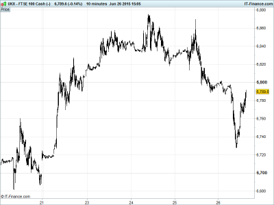 The negative opening call comes after Greek bailout talks broke down yet again, this time at a time when markets would really have preferred it if they hadn’t - UK Index gapped down over 160pts, DAX 505pts and Wall St. 245pts after Greek banks shut their doors for this week while having capital controls imposed by Athens – notably a €60 daily limit on cash withdrawals to avoid a catastrophic run on the banks which do not have the cash to dispense - ahead of a 5 July referendum that is essentially on whether or not Greece remains in the single currency bloc.