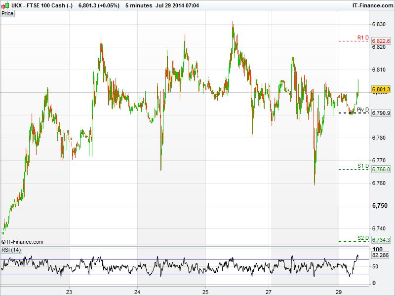 UK 100 called to open up 10pts at 6800, after a flat session yesterday saw the UK Index give up just 3pts.