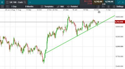UK 100 is called to open +4 points this morning at 6744. The UK bluechip index is expected to open a slither higher this morning, on hope of optimism, as the UK passes the first stage of PM Boris Johnson "Road map to recovery". Elsewhere The Ever Given, the vessel that has been blocking the Suez Canal, has been partially refloated and that has sent oil prices lower this morning. In the US on Friday, the Dow Jones added 453 points at 33,073 on Friday while the S&P gained 65 points to 3,975 for a positive end to the week. This morning in Asia, The Nikkei 225 was 350 points to the good at 29,526 this morning in Japan while in Hong Kong the Hang Seng index is 50 points stronger at 28,386.