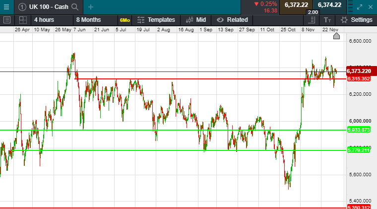 UK 100 called to open -10 points this morning at 6374.   Calls for a slightly muted open follow a positive performance in the US overnight, which saw the Dow Jones Industrial Average close up 0.63% at 29,823 while the Nasdaq Composite rose 1.28% to a record close of 12,355 and the S&P 500 climbed 1.13% to also end at a record high of 3,662.  Asian markets were more mixed on Wednesday following the rally on Wall Street, with Japan’s Nikkei 225 up 0.07% while Hong Kong’s Hang Seng dropped 0.35%.