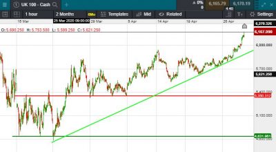 UK 100 called to open +36 points points at 6160.  The positive momentum continued last night as Asian stocks rose to seven week highs, mainly encouraged by positive early results from a COVID-19 treatment trial. Gilead sciences lead the pack with this positive trial breakthrough. The ECB have a new conference today (1.30pm) where they are expected to expand their bond buying programme to better support banks. Elsewhere Germany's COVID cases increased the most on four days whilst the US sizes up lock down options and underscores a second-wave risk. WTI crude surged last night continuing its recovery to finish at $16.61 a barrel.