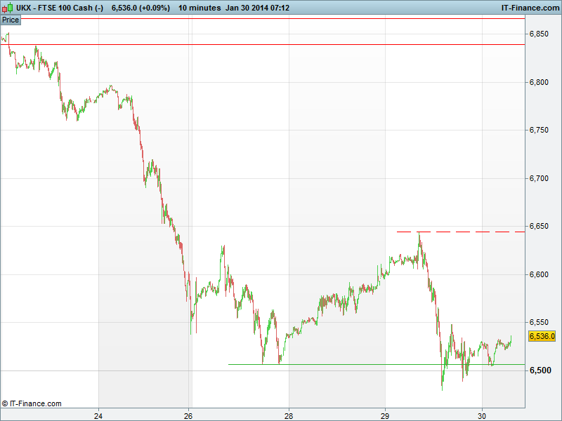 UK 100 called to open -5pts at 6536, taking a lead from US and Asian markets overnight as global markets react to the continuation of US stimulus tapering. Last night, the FOMC voted unanimously to reduce asset purchases by a further $10 Bln. Although most of the damage had already been done to US indices, we did see a further sell-off, leaving the Dow Jones to close down 189 points at 15,738 whilst the S&P was down 18 points at 1,774.