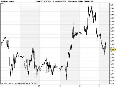UK 100 called to open -45pts, with US and Asian markets having turned back from recent highs after minutes from the US Fed’s (Federal Reserve) FOMC (Federal Open Market Committee) indicating policy makers divided and concerned about risks associated with continued QE (quantitative easing).