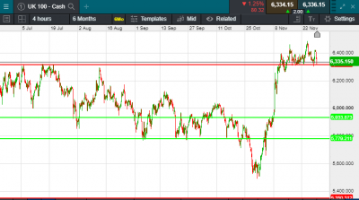 UK 100 called to open -30 points this morning at 6337. A weaker open is expected this morning as some of the positive sentiment we saw on the back of hopes of a quicker than expected roll out of a vaccine have given way to concerns over new lockdown measures. It was a quiet session in Asia this morning, where Japan and China both slipped back. Futures markets suggested the US S&P 500 would slip 0.2% when US markets open this afternoon.