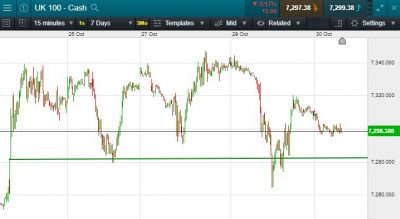UK 100 called to open -10 points at 7295; It is now confirmed that the U.K will head to the polls December 12th for a snap general election. This however is more than a general election, this will be a proxy referendum on Brexit as voters choose between parties offering to cancel the divorce deal or to press on with it at any cost. The US had a mixed trading session, with the DOW closing -0.07%; The S&P closing -0.08% and the Nasdaq closing -0.59%. It was a similarly subdued trading session in Asia overnight with the Nikkei -0.57% & The Hang Seng -0.53%. President Trump said he wants to dictate where cars are made, this may have impacted Asian sentiment.