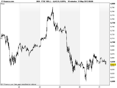 UK 100 called to open -5pts, potentially taking a breather at month-end, despite Asian markets higher overnight, Japan retracing some of yesterday’s second big sell-off (correction over?), and after another positive US and European close, helped by unchanged Eurozone sentiment and US data (GDP, Jobless, Housing) seeing the QE3 taper fears dial turned down a notch