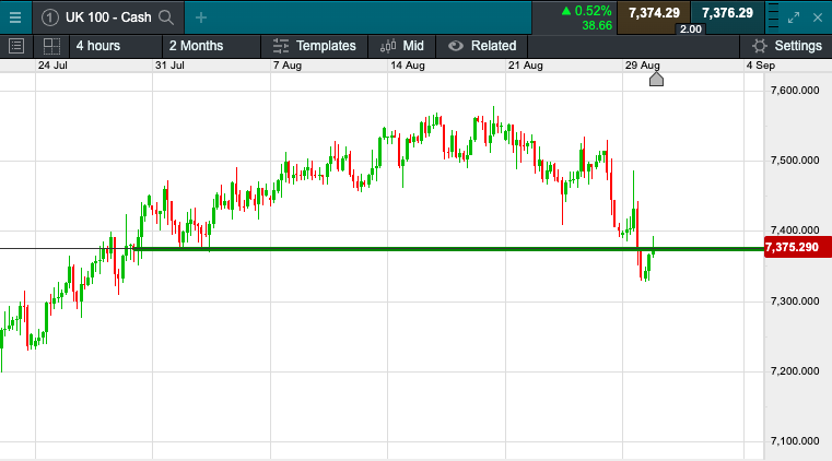 The UK 100 is called to open +15 points this morning at 7375.