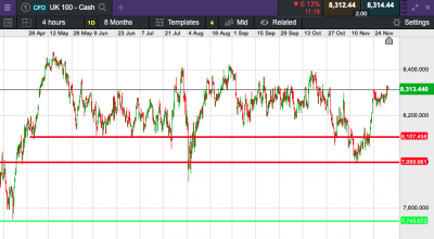 The UK 100 called to open +2 points at 8,315. The UK 100 looks set to open higher this morning, driven by a weaker sterling, benefiting international businesses.
