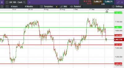 The UK 100 called to open -11 points at 7,499. The UK 100 looks set to open lower after a mixed showing in the US following hawkish comments from two leading Fed officials. The US Federal Reserve will likely need to keep interest rates higher for longer in order to firmly bring down inflation, a senior Fed official said. The comments kept the Dow Jones Industrial Average in the red down 0.2% although the Nasdaq Composite rose 0.7%. In Asia, Evergrande shares surged as much as 42% on Tuesday after resuming trading in Hong Kong after a suspension.