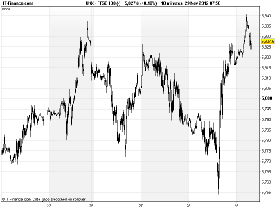 UK 100 called to open +20pts, with Asian markets following US bourses higher (after a rebound) as investors jumped back on the risk appetite train after US lawmakers and corporate executives (inc Goldman Sachs CEO Blankfein) expressed optimism that a deal can be reached on the US fiscal cliff (they have to, don’t they?), with President Obama even suggesting before Christmas.