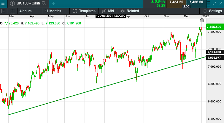 The UK 100 is called to open +73 points today at 7457.  The UK 100 looks set to start the new year with a bang, playing catch-up with Wall Street after new records were set overnight, including Apple becoming the world’s first $3trn company.  US Markets were open yesterday, And started the year in strong fashion, the Dow Jones and S&P 500 both ascending to record highs, up 0.7% and 0.6% respectively.  The Nasdaq jumped 1.2% and the small cap index, the Russell 2000, also climbed 1.2%.  The picture in Asia this morning was more mixed, China’s Shanghai Composite slipped 0.28% and Hong Kong’s Hang Seng index fell 0.08%.  The Nikkei in Japan jumped 1.77% while South Korea’s Kospi remained near the flat line.
