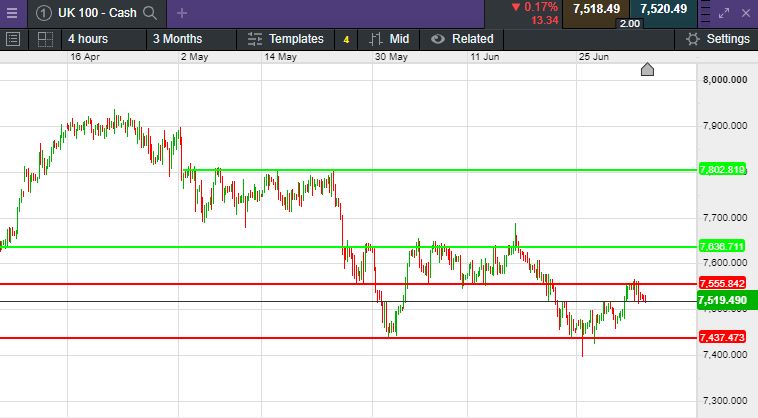 The UK 100 called to open -8 points at 7519.  The UK 100 looks set to open marginally lower this morning, with US markets closed for Independence Day and Asian markets mixed.  In an shortened session on Monday, US markets closed little changed despite weak manufacturing figures.  The Reserve Bank of Australia left its key interest rate unchanged Tuesday, with Governor Philip Lowe saying that while inflation had "passed its peak" the economic outlook remained uncertain.