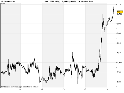 UK 100 called to open +90pts, reaching 4-month highs, after the US Federal reserve (Fed) last night pleased markets by announcing the third round of quantitative easing (QE3), something sought by traders for several months. This involves the purchase of $40bn of Mortgage Backed securities (MBS), on top of existing US Treasury Bond purchases, in order to bring down long-term borrowing costs and hopefully boost growth (forecasts for which Chairman Bernanke also reduced). Interest rates will also stay lower for longer.