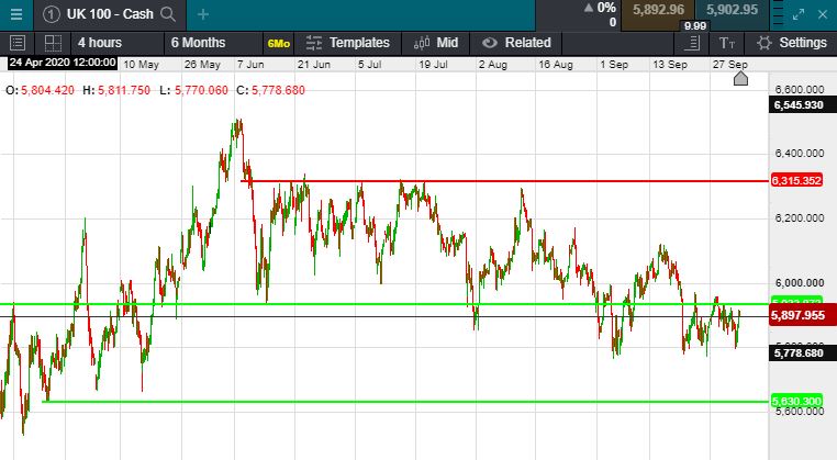 UK 100 called to open +40 points this morning at 5942.