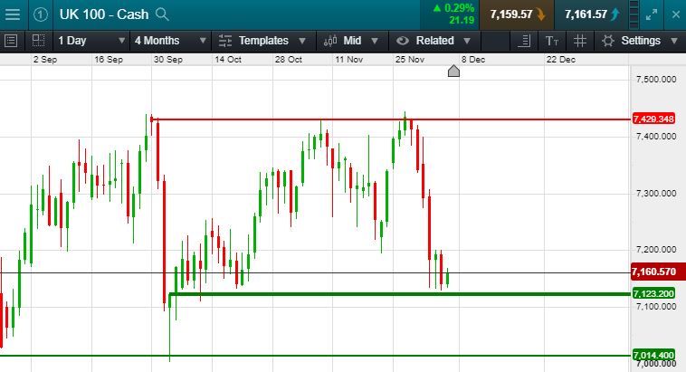 UK 100 called to open +30 points this morning at 7166; On the back of upbeat rhetoric from President Trump on A US-Sino trade deal, this comes as Beijing underscores demands to cut tariffs. This sentiment saw the Dow Jones recover from a down day to close out the trading session +28 points, the S&P +5 points and the Nasdaq +5 points completing a US green sweep. During Asian sessions the Nikkei continued this green feel closing +65 points, while the big winner was the Hang Seng +191 points, could we see this positive sentiment filter through to European equity markets? The UK Index has once again bounced from the bottom of its two month Channel, is this the beginning of a return towards the higher end of that channel? 40 points lower? Or 250 points higher? Also in focus overnight was The OPEC+ meeting, OPEC ministers agreed in principle to deepen their output-cuts target by 500,000 barrels a day, but stopped short of nailing down a formal agreement, could we see further movement on this today? Oil prices wobbled slightly overnight but held firm at $63.75 as trading session continued. Gold pulled back slightly from yesterday’s highs of $1480 to settle at $1473, further signs of risk on appetite in the markets.
