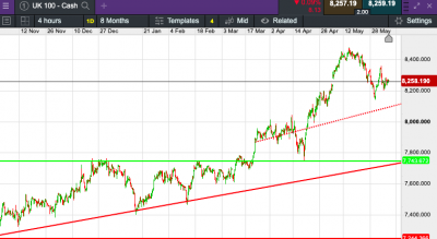 The UK 100 called to open +13 points at 8,259.  The UK 100 looks set open higher this morning, feeding off the momentum of a strong finish on Wall Street yesterday.  Attention today will turn to the European Central Bank meeting.  The S&P hit a fresh record yesterday adding 1.18% to close at 5,354.03, as Nvidia led major tech stocks higher and slightly weak labor market data gave investors hope the Federal Reserve might move to lower interest rates later this year, a fresh record.  The Nasdaq advanced 1.96% to 17,187.90, also a new record. The Dow Jones trailed a bit as stocks outside of technology underperformed, adding 96.04 points, or 0.25%, to finish the session at 38,807.33.