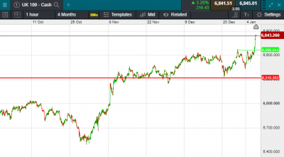 UK 100 called to open +65 points this morning at 6919. Global markets rallied hard yesterday and last night, as Democrats took control of Congress, and hopes of a big borrowing and big spending Democratic administration will drive growth. Tech stocks suffered initially in the US, as President-elect Joe Biden has plans to toughen up regulation and taxes on them and large corporations. This euphoria was some what dampened towards the end of the day as scenes from Capitol Hill resembled something out of a movie, with Trump supporters storming the Senate in protest towards the electoral results. Reports that one supporter was shot and guns were drawn inside the senate. Elsewhere oil hit 10 month highs after the promise of a production cut from Saudi Arabia, with Brent last up 0.7% at $54.69 and WTi rising 0.95 at $51.07 a barrel.