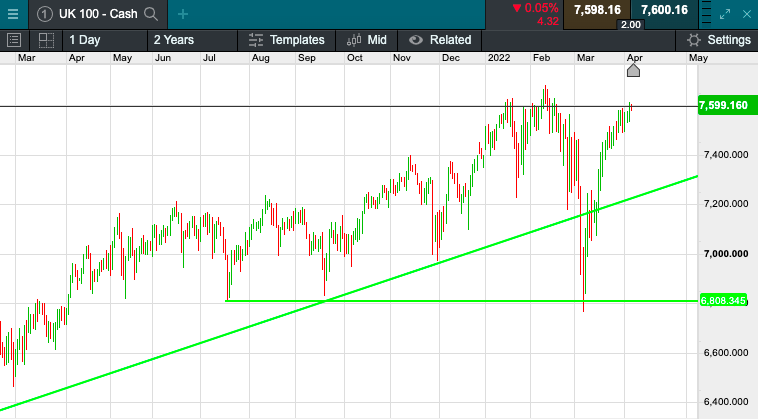 The UK 100 is called to open +63 at 7613. The UK's bluechip index looks set to recover yesterdays losses. Stateside yesterday saw The Dow Jones advanced 87 points or 0.3% to close at 34,584 while the broader-based S&P climbed 19 points to 4,500, closing the day in credit despite more hawkish commentary from the Federal Reserve on interest rates. In Asia this morning, markets have retreated slightly. Tokyo’s Nikkei is down 6 points at 26,883 and Hong Kong’s Hang Seng is off 125 points at 21,684.