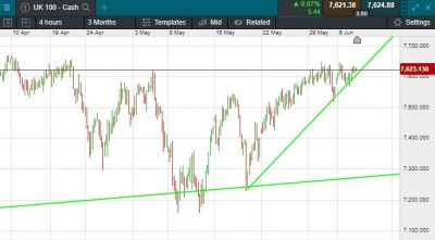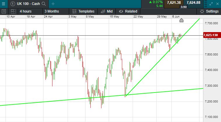 The UK 100 is called to open +23 points this morning at 7623.