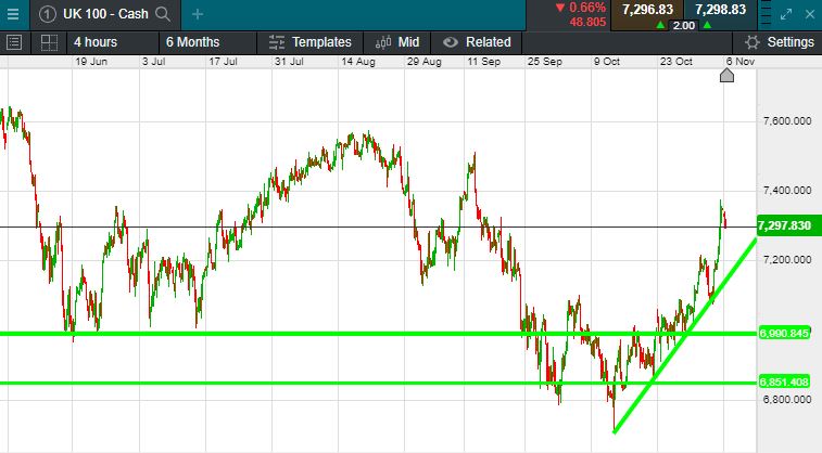 | UK 100 INDEX | 7,300 | -0.5% | 0.0% |