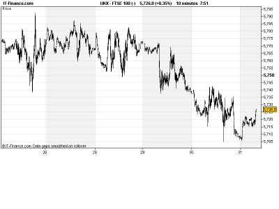 UK 100 called to open flat, with Asian markets showing lower with sentiment held back on persistent concerns regarding Chinese growth ahead of Saturday’s official PMI figure (sub-50, contraction territory?), a collapse in Japanese Industrial Production coupled with soft inflation figures and continued general caution ahead of US Federal Reserve (Fed) Chairman Bernanke’s Jackson Hole speech this afternoon.