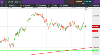 The UK 100 called to open +2 points at 8,195. The UK’s blue chip index looks set to edge higher again this morning as it attempts to find its feet under the new Labour Government. This follows on from a widely uneventful trading session yesterday, however, in the US, the S&P 500 and Nasdaq both hit new all-time highs in the US, traders will be eyeing a feedthrough to the London markets.