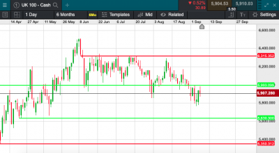 UK 100 called to open -29 points this morning at 5901. Yesterday saw the reopening of the US stock markets after the labour day bank holiday on Monday, The Dow Jones dropped by 632.42 points, or 2.3%, to close at 27,500.89 to continue on the fall from late last week. The S&P also fell, dropping 2.8% to 3,331.84. The Nasdaq Completed the set, closing 4.1% lower to 10,847.69. Tech stocks once again lead the downward movement seeing the Nasdaq now being down 10% in the last three days of trading.